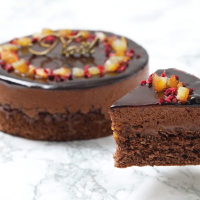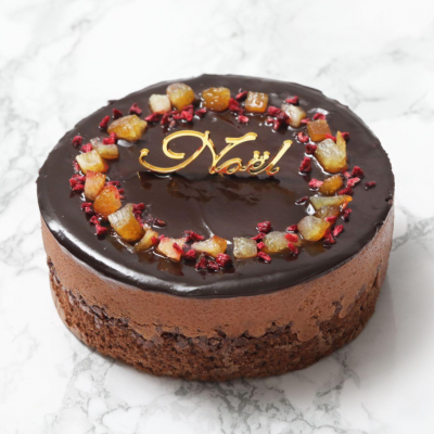 とろけるような口溶けのチョコムースに、フィアンティーヌのザクザク食感を重ね、隠し味にオレンジマーマレードの爽やかさを効かせた、まさに“大人のためのクリスマスケーキ”。